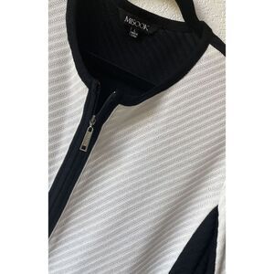 Misook Black White Color Block Acrylic Full Zip Jacket Women's Size Large