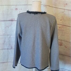 Misook Knit Button Front Fringe Trim Blazer Size Large