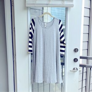 Miss 2 Day Contrast Pattern Lightweight Stripe Sleeve T-Shirt Dress Size Large