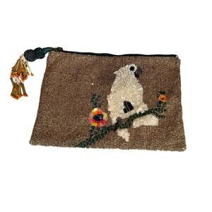 Miss Albright Anthropologie Beaded Clutch Bag Metallic Gold Bird