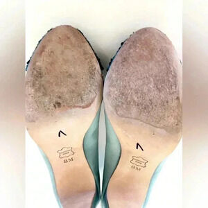 Great preowned condition. Has wear and marker on the bottom of the shoe and a couple marks on the satin.