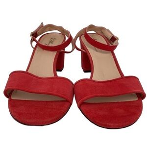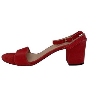 Miss Albright Shoes Heeled Sandals Red Leather Ankle Strap Open Toes Size 11