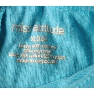 Miss Attitude Girls X Large(16) Short Sleeve Tee T Shirt Solid Blue