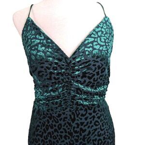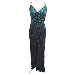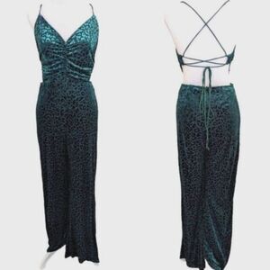Miss Avenue Green Velvet Burnout leopard animal backless cutout jumpsuit M