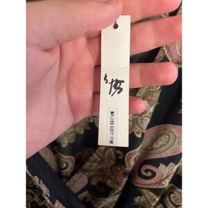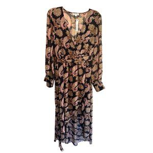 Miss Avenue Paisley Long Sleeve Maxi Dress L Black Pink Sheer Wrap Kaftan Style