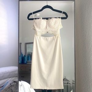Miss Avenue | S | Off White Lace Cutout Strapless Dress Set