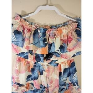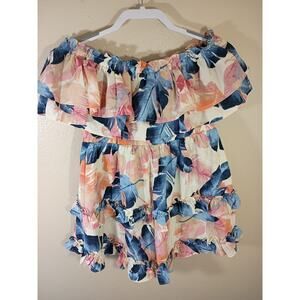Miss Avenue Strapless Romper Multicolored Floral Ruffles Sz L Beach Festival...