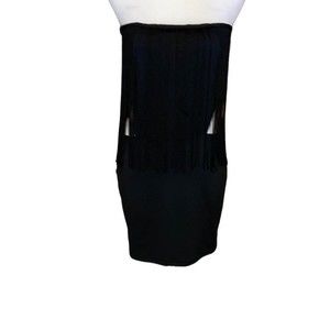 Miss Avenue black tasseled go-go mini dress. Caged by tassels. Sexy and sexy! Are you daring? Size L. Approximate measurements when measured laying flat: 16 inches pit to pit, 26 inches in length. Please compare measurements to your favorite garments to ensure best fit.