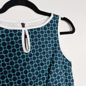 Miss B Tween 14 Navy Blue Green White Polka Dot Print Shift Dress Sleeveless
