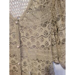 Miss Bella D Lace Mocha Mousse Brown 1X SemiSheer Blouse Boho Coachella Western Prairie Pearlescent Buttons Lace