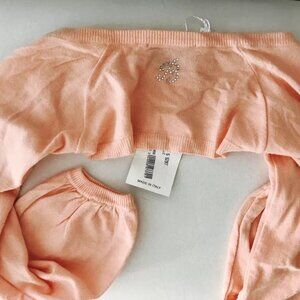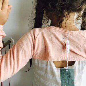 Miss Blumarine Girls Salmon Pink Cropped Cardigan With Sleeves Sz 5/6