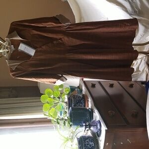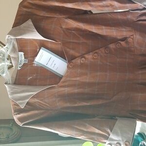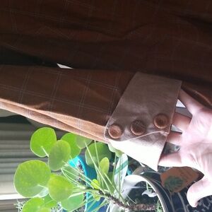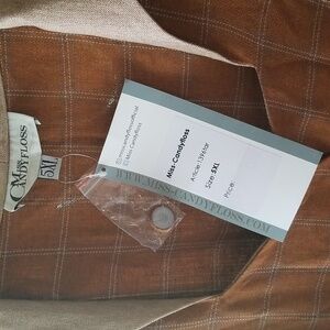 This is the Graciela Rusti dress by Miss Candyfloss in a size 5XL. The fabric is 60% cotton, 25% viscose, 15% Polyester in a beautiful autumnal burnt orange with a subtle ivory and blue plaid. Really pretty details on the bodice, collar, and sleeve cuffs. Coordinating beige belt included. The bodice buttons are functional, sleeve cuff buttons are not. Pleated, swingy skirt with pockets. Unlined. New with tags.