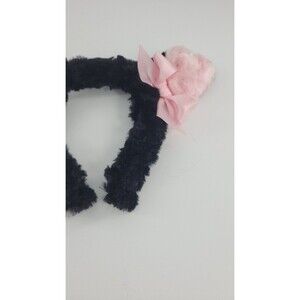 Adorable Miss Candyholic Fluffy Licorice Kitty Headband in Black and Pink. This ultra-kawaii accessory features soft fluffy fabric, cute pink bows, and a sweet Fairy Kei aesthetic—perfect for adding a touch of Harajuku charm to your outfit. It measures 6" in height and 5" in width. In excellent condition, only tried on once with no visible flaws. A must-have for any kawaii, Fairy Kei, or pastel goth wardrobe!