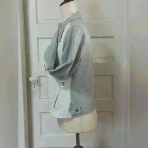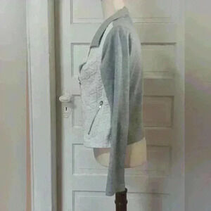 Super cute Moto jacket! Size Junior Large. Measures shoulder to hem 20" bust flat 18". Polyester/Rayon/Spandex.