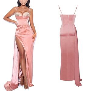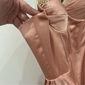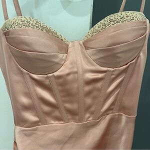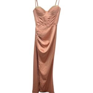 Miss Circle Gown Maxi Dress Vanity Pink Satin Corset Rhinestone Draping size XS
