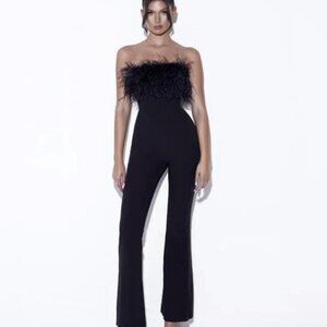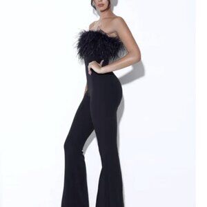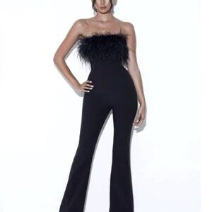Miss Circle Kylan Black Feather Jumpsuit Size L