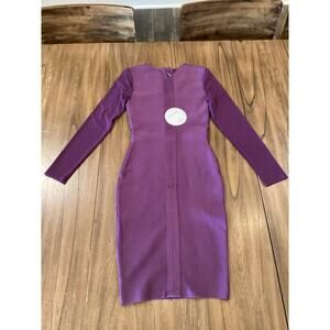Miss Circle Revolve Purple Bandage Bodycon long sleeve mini Dress Mesh small