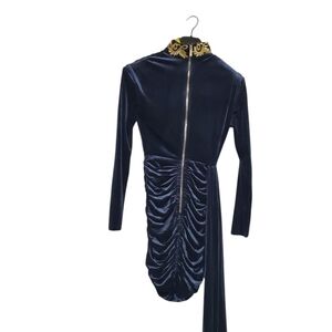 Miss Circle Size XXS Cutout Long Sleeve Draping Velvet Dress Gracyn Blue.