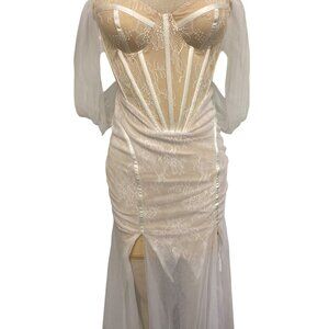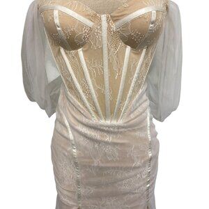 Miss Circle XS Sheer Lace Corset Dress With Detachable Sleeves