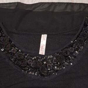 Miss Couture Black Whimsigoth Fairy Bead & Flower Embellished Sheer Hem Dress M