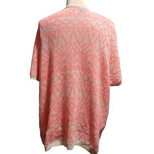 Miss Daisy S Coral Aztec Open Knit Cardigan Short Sleeve Boho Lightweight Layer