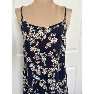 Miss Daisy Spaghetti Strap Navy Blue Floral Mini Dress Cover Up Size M