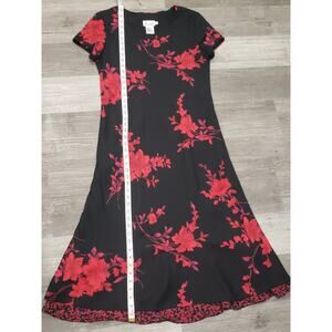 Miss Dorby Black & Red Floral Print Short Sleeved Christmas Holiday Party Dress. Great preloved condition.