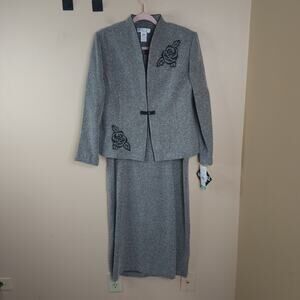 Miss Dorby Petite Embroidered Gray Jacket and Dress in Tweed Size 16P
