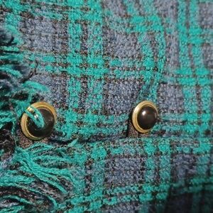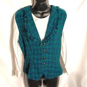 Miss Dorby Vintage Long sleeved plaid top, button in inset, tie back