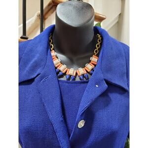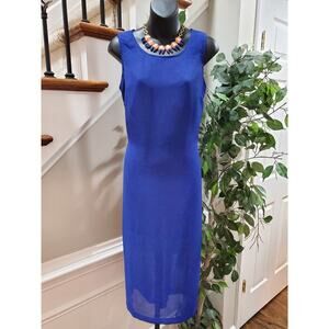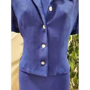 Miss Dorby Women Blue Solid Short Sleeve Jacket & Knee Length Dress 2 Pcs Suit M
