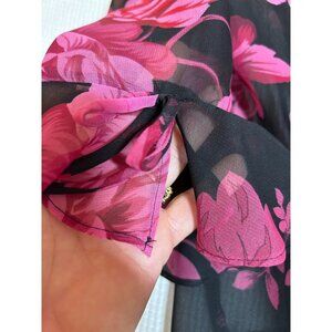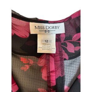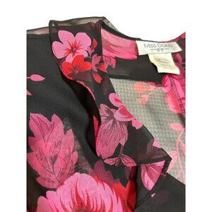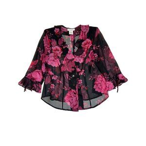 Miss Dorby Women's Floral Sheer Blouse 3/4 Sleeve Button Front Size 12