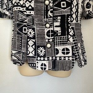 Miss Dorby Womens Size 10 No Collar Button Jacket SS Black & White Shoulder Pads