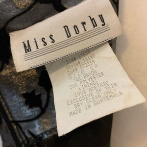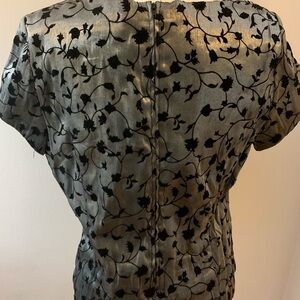 Miss Dorby dressy top with silver and black floral designed fabric..This is a vintage piece with small shoulder pads..