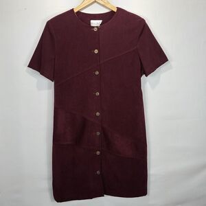 Miss Dorby Vintage Suede Button Up Burgundy Dress