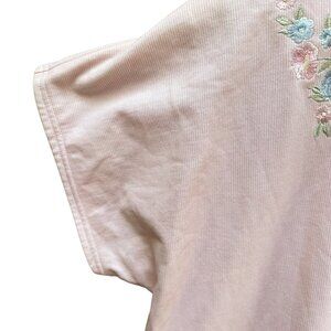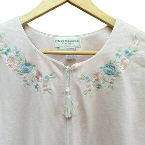 Miss Elaine Classics Housecoat Dress Robe Pink White Embroidered Comfy Size L