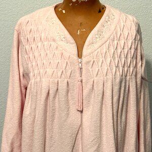 Miss Elaine Collette Fleece Front Zipper Pink Robe NWT Medium Embroidered Flower