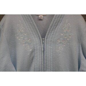 Miss Elaine Full Zip Embroidered Bed Jacket-Size Large-Soft and Comfy-Pockets