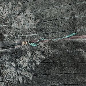 Super soft and cozy, this robe is a full zip style, with satin striping and floral embroidery around the neckline. Also has pockets on both sides.