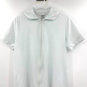 Miss Elaine Gingham Blue White Print Front Zip Robe Women Small