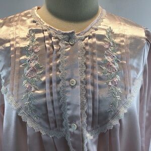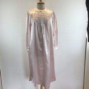 Miss Elaine Intimates pink long sleeve appliquéd long nightgown. Size M