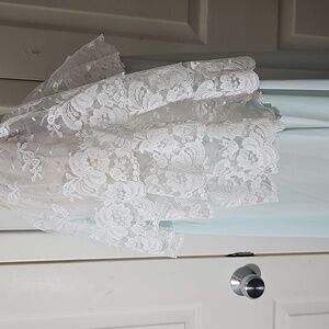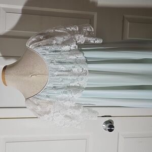 Miss Elaine Light Blue And White Lace, long Vintage Robe. Oversized Small.