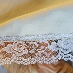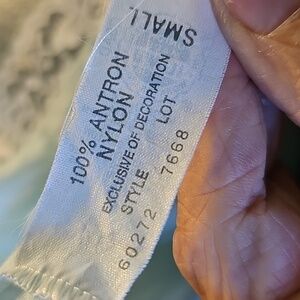 This robe is so very lovely. in very good condition and quality. Union made in USA.Lace sleeves and trim. It's a small however plenty big for me, and I'm a Medium. pit to pit flat measurement is 26". The sleeves are about 11". The measurement from under are to hem is 77". Luxurious light and airy vintage robe.