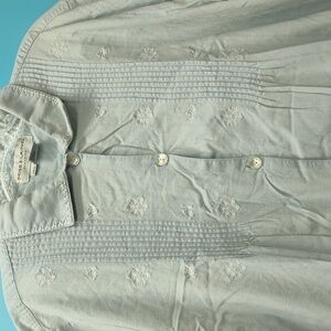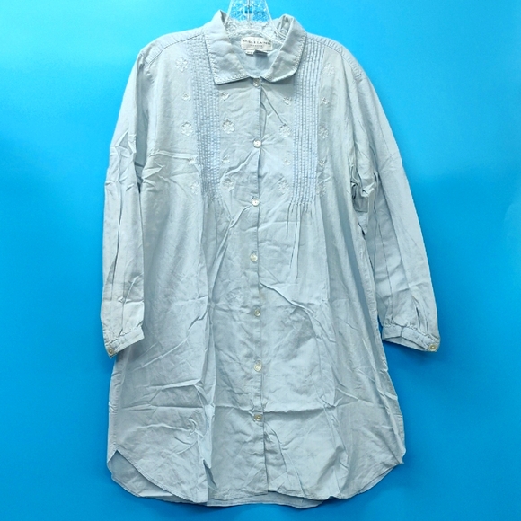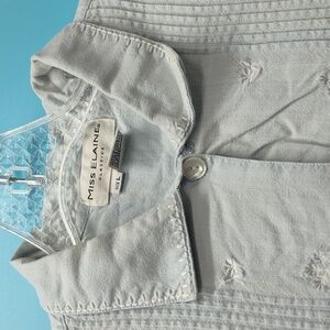 Elegant light blue robe by Miss Elaine. Features button-down front and delicate detailing. Perfect for comfort and style.