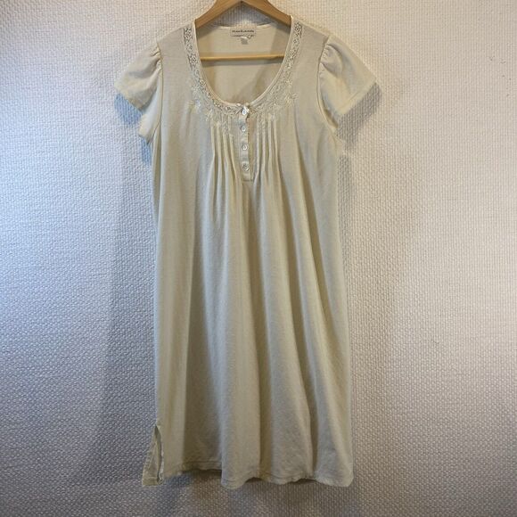 Miss Elaine MIDI Nightgown SZ Med Cap Sleeve Scoop Neck Embroidered Cream
