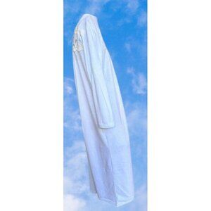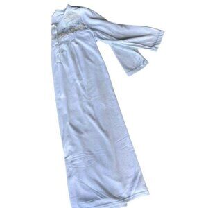 Miss Elaine Maxi Nightgown Small Blue Fleece Embroidered Flowers Lace Buttons
