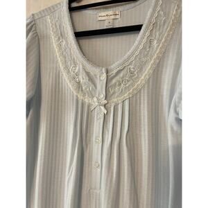 Miss Elaine NWT Cuddleknit Brushed Inside & Out Top Button Blue Gown Size Small