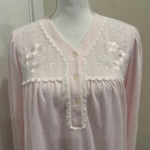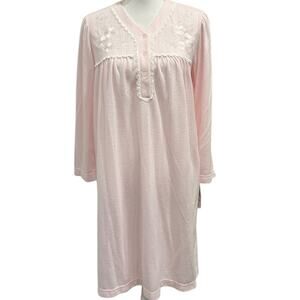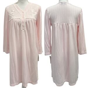 Miss Elaine Petites NWT Pastel Pink Floral Embroidered Knit Nightgown Coquette