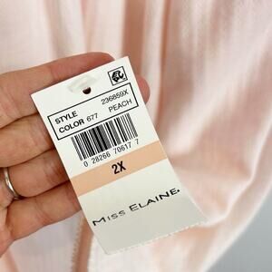 Miss Elaine Plus Size Brushed Honeycomb Pointelle Knit Nightgown Peach Size 2X