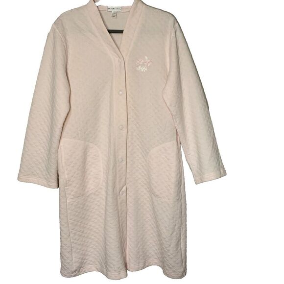 Miss Elaine Robe Medium Pink Vintage Housecoat Quilted Snap Closure Pockets Long Plush