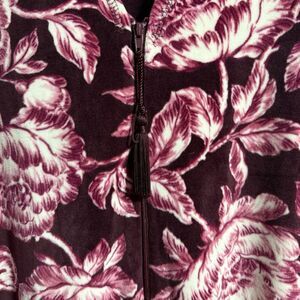 Miss Elaine Relax Women Printed Brushed Velour Zip Up Robe Pockets Small